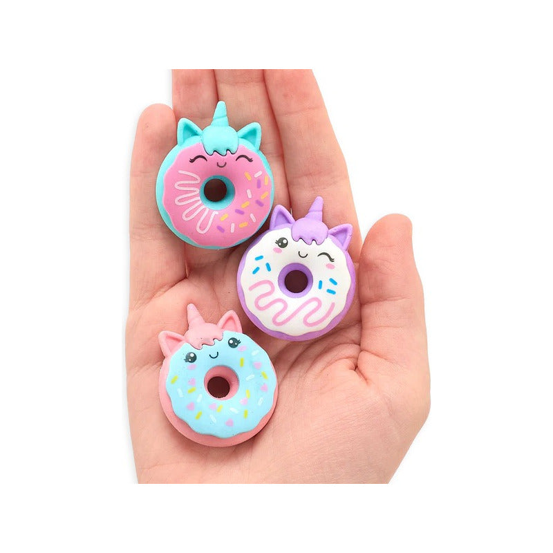Juego de tres borradores de lápices Unicorn Donut nunca te quedes sin uno!