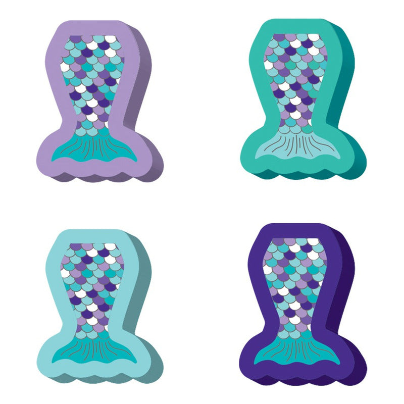Nuestro juego de borrador de sirena incluye 4 mini colas de sirena. Son ideales para la escuela, el campamento o para escribir y dibujar en casa.