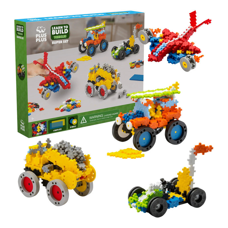¡Plus-Plus es una forma con infinitas posibilidades! El Super Set ¡GO! Aprende a Construir Vehículos es una excelente manera de iniciarse en Plus-Plus. Los niños aprenderán a crear en 2D o 3D, fomentando el juego creativo y abierto.