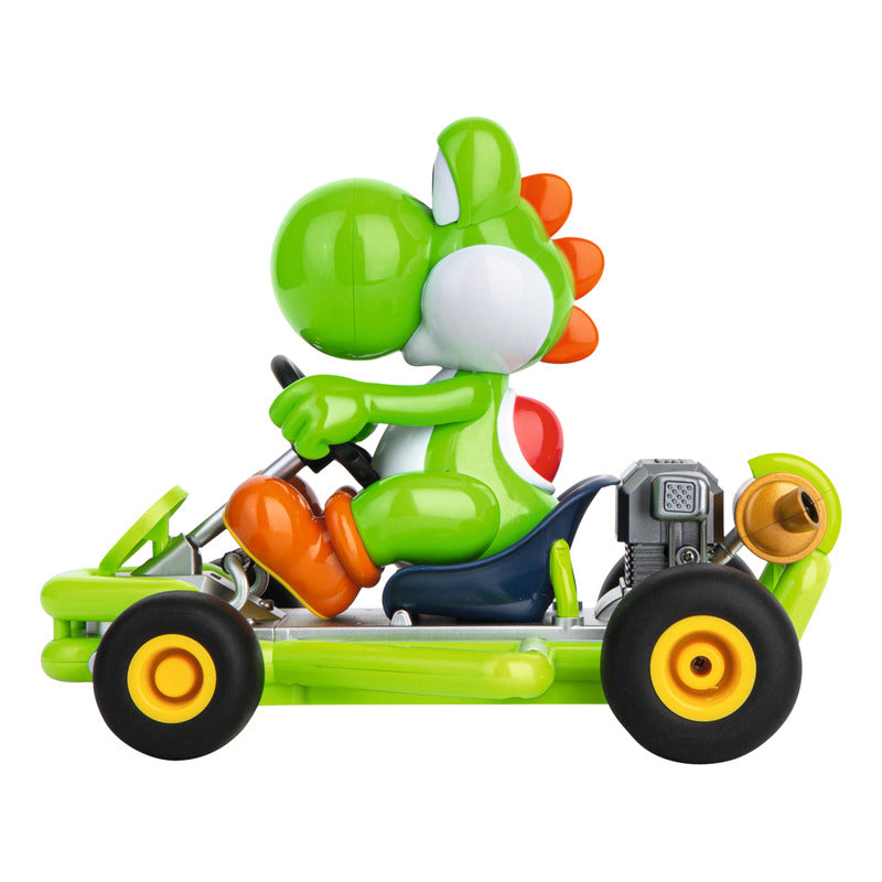 Famoso por los videojuegos de culto Mario Kart, Yoshi se embarca en aventuras de carreras de alta velocidad en el dormitorio y el salón en su Carrera RC Mario Kart Pipe Kart Kart. En cada vuelta, Yoshi alcanza velocidades máximas de 9 km/h, luchando por la victoria durante hasta 30 minutos gracias a la unidad de potencia LiFePo4 y las baterías, todas incluidas en la caja.