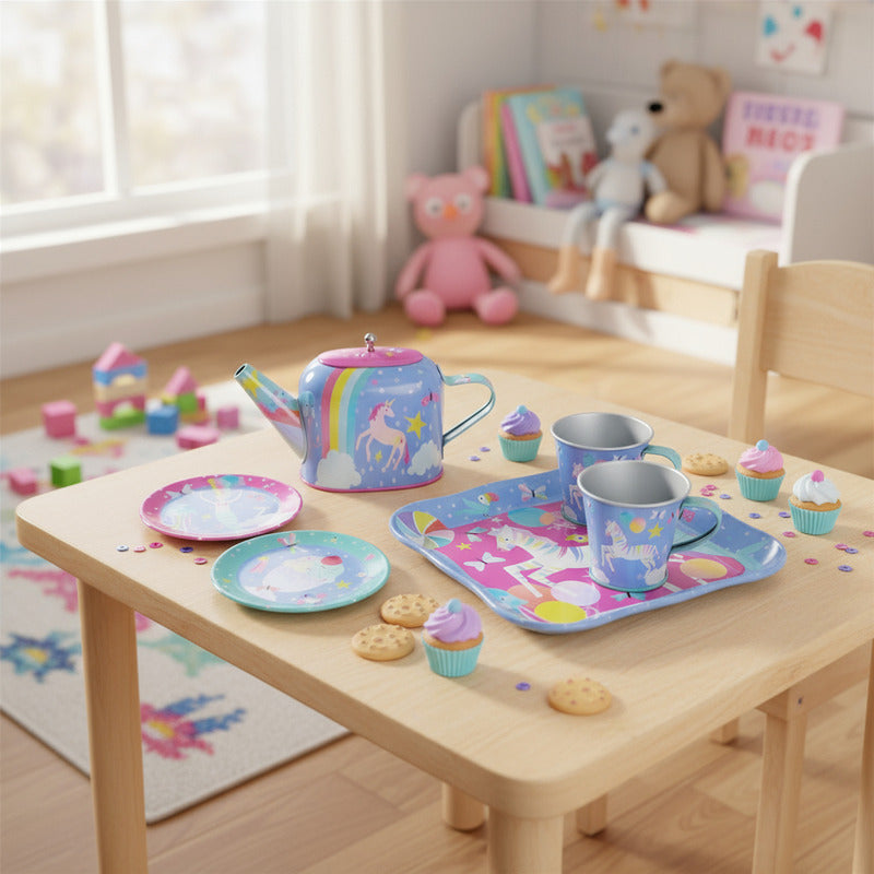 Nuestro juego de té Fantasy de 7 piezas es la excusa perfecta para una fiesta de té por la tarde. La caja de colores brillantes contiene ilustraciones de sirenas, unicornios, tucanes, medusas y más.