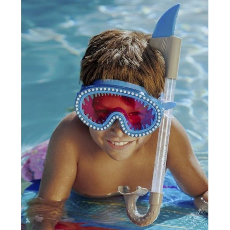 Con un atrevido diseño de tiburón y una divertida aleta, este elegante snorkel es perfecto para los pequeños aventureros que disfrutan de la aventura submarina.