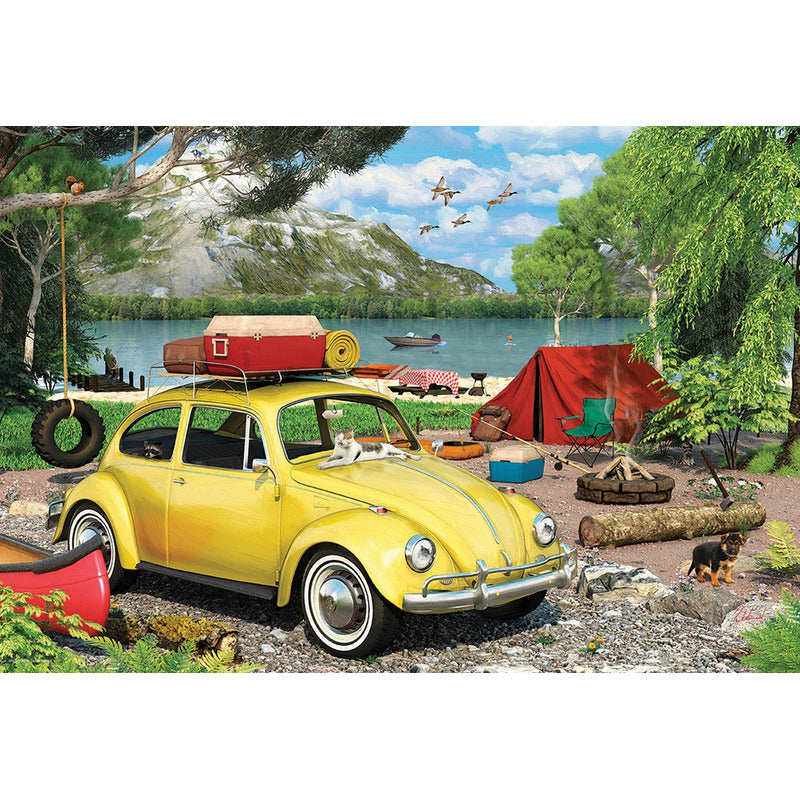 ¡Revive la nostalgia de las aventuras al aire libre con el rompecabezas VW Beetle Camping Tin de 550 piezas de Eurographics! Esta vibrante obra de arte captura un clásico VW Beetle amarillo estacionado junto a un sereno lugar para acampar junto al lago, rodeado de naturaleza y divertidos elementos esenciales al aire libre.