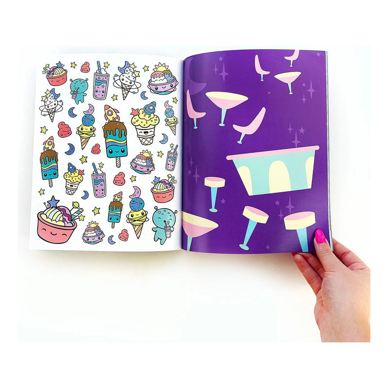 Este bonito libro de calcomanías COLORFUL lo tiene todo. ¡Cosas para colorear! ¡Cosas para dibujar! ¡Cosas para pegar! Repleto de más de 400 de las calcomanías kawaii MÁS LINDAS, encontrarás un montón de diseños temáticos de fantasía en el interior. Desde gatos extraterrestres y ovnis hasta conejitos astronómicos y paletas espaciales, ¡prepárate para dejar volar nuestra imaginación!
