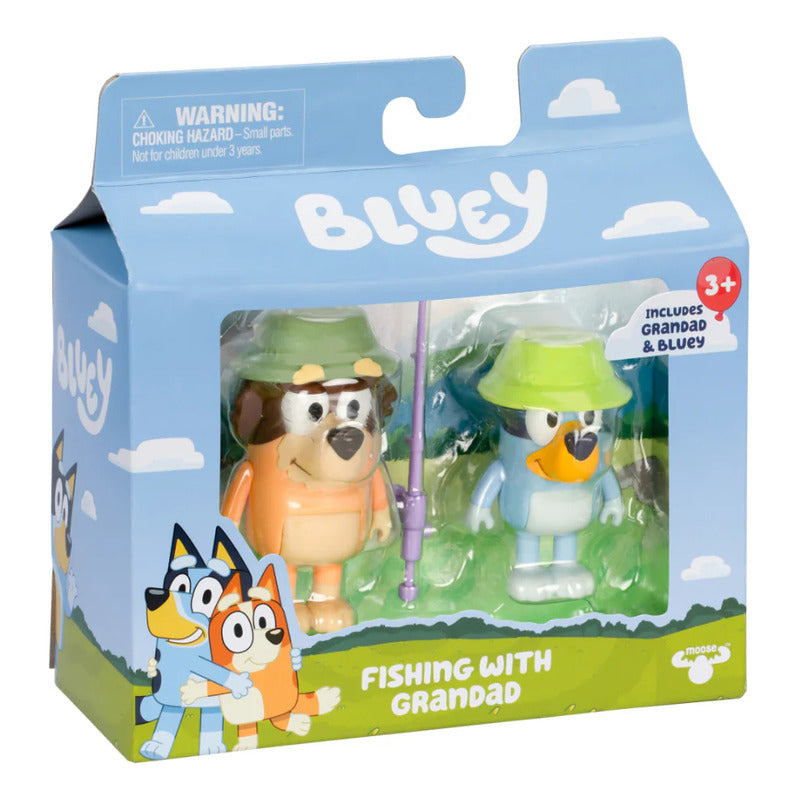 BLUEY. Set 2 Figuras Pescando Bluey y el Abuelo