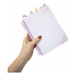 Este diario de Hello Kitty y sus amigos contiene 145 páginas rayadas y 5 separadores con pestañas para que encuentres tus páginas favoritas. Mide 14 x 19 cm.