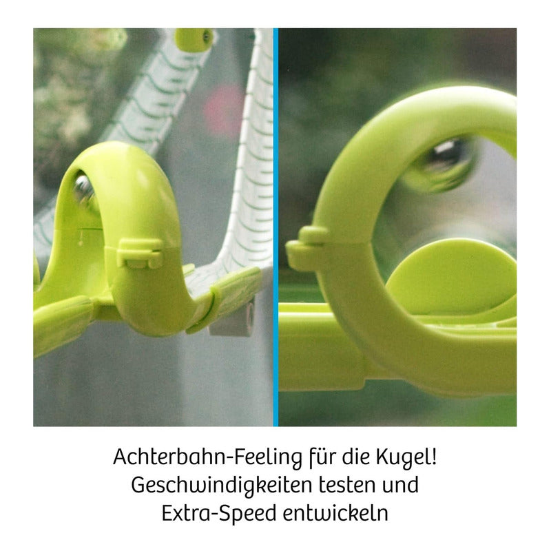 Los elementos de pista adicionales significan que el alcance de la pista de canicas se expande, por lo que puede cubrir aún más baldosas, puertas, ventanas, estantes y otras superficies.