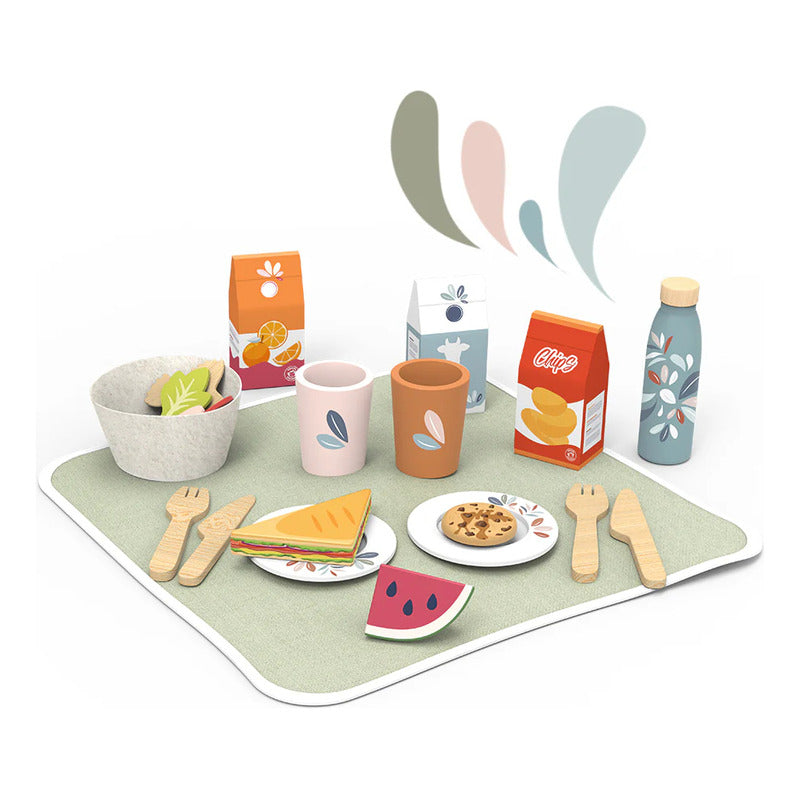 Incluye platos, tazón de fieltro, cartones de alimentos y bebidas. Diseñada para mayores de 3 años, esta cesta de picnic es un accesorio versátil que elevará tus experiencias al aire libre.