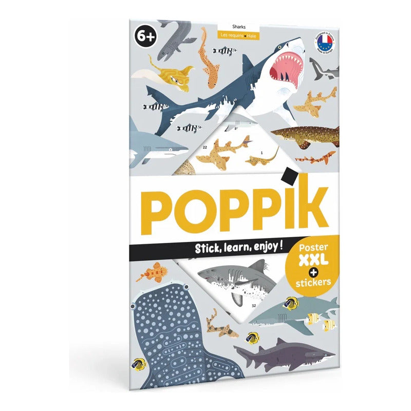 Poppik - Póster Educativo para Decorar: Tiburones (Póster + 45 Calcomanías)