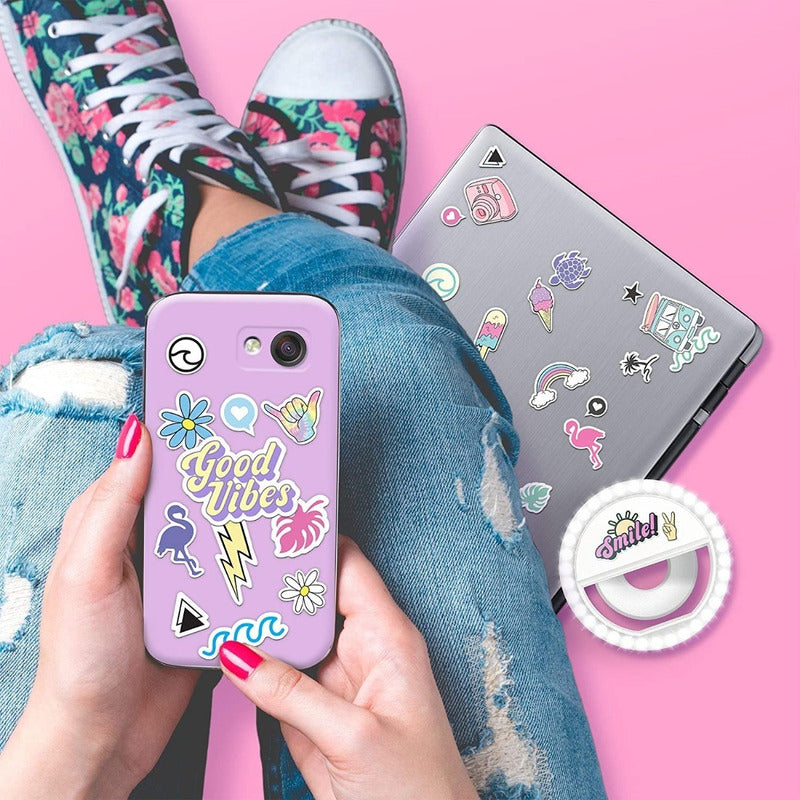 Incluye más de 50 pegatinas para personalizar Selfie Creator y la funda del teléfono, la computadora portátil u otros dispositivo