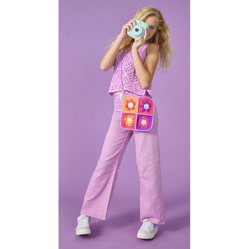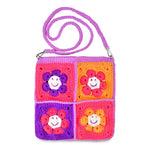 Olvídate de esos bolsos comunes con su apariencia sobria o sus gráficos poco imaginativos: ¿qué gracia tienen? ¡Dale un toque de color y humor con este bolso bandolera divertido y colorido, todo menos aburrido! Este encantador bolso de crochet presenta cuatro alegres caras sonrientes que alegrarán el día de todos. El bolso está completamente forrado y tiene un cierre de cremallera para mantener todo fácilmente accesible y totalmente seguro. La correa de hombro de crochet a juego también es extraíble.