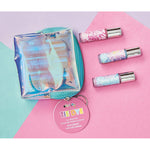 ¡A todas las chicas les encanta darle un toque de brillo a su look antes de salir a conocer el mundo! ¡Añádele un aroma divertido y estará lista para todo! Este brillante y audaz set incluye tres mini brillos labiales con aplicador de varita con los mensajes inspiradores "Sé amable", "Tú puedes" y "Agradecida". Cada uno tiene un aroma diferente (vainilla, sandía y frutos rojos) y contiene 0.16 oz de brillo cada uno. ¡El set viene en una elegante bolsa de maquillaje holográfica con cierre de cremallera! La combinación perfecta de diversión colorida, diseño irresistible y calidad suprema: ¡justo lo que esperas de iscream!