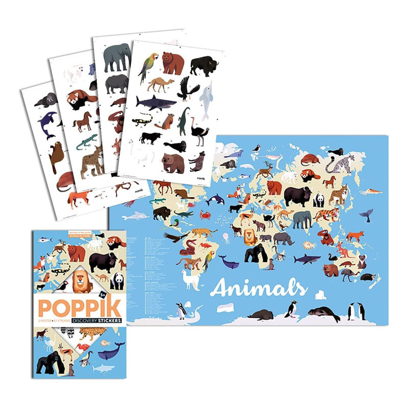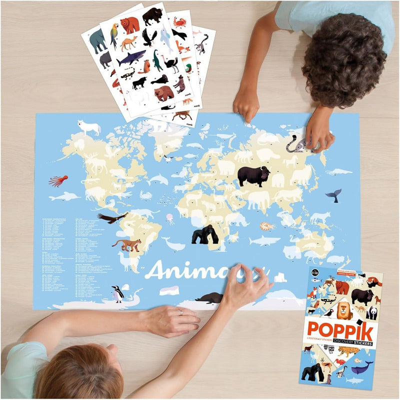 Poppik - Póster Educativo para Decorar: Animales Del Mundo (Póster + 67 Calcomanías)