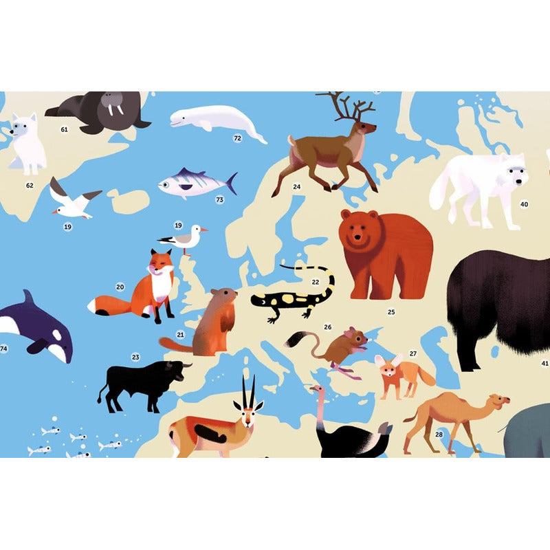 Con este póster, los niños se entusiasman con los animales. Pegan las pegatinas en el mapamundi y descubren los animales emblemáticos de todos los continentes. Crean un póster precioso para la habitación.
