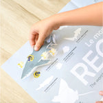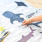 Pegan las pegatinas en el póster grande y descubren las especies submarinas más famosas: el gran tiburón blanco, el tiburón ballena, la manta raya, etc. Crearán un precioso póster para su dormitorio.
