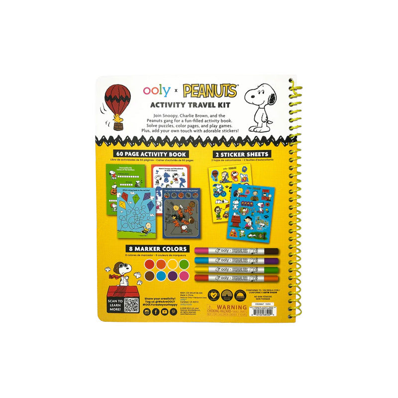 Con un libro de actividades de 60 páginas repleto de rompecabezas, juegos y hojas para colorear, este kit de viaje es perfecto para los niños que adoran las aventuras de la pandilla de Peanuts.