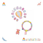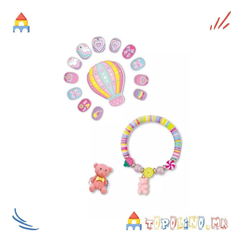 Contiene: 12 uñas postizas, 1 pulsera con dije, 1 anillo ajustable y 1 lima de uñas.
