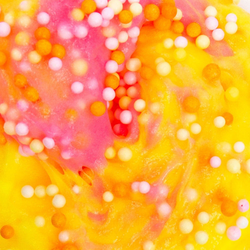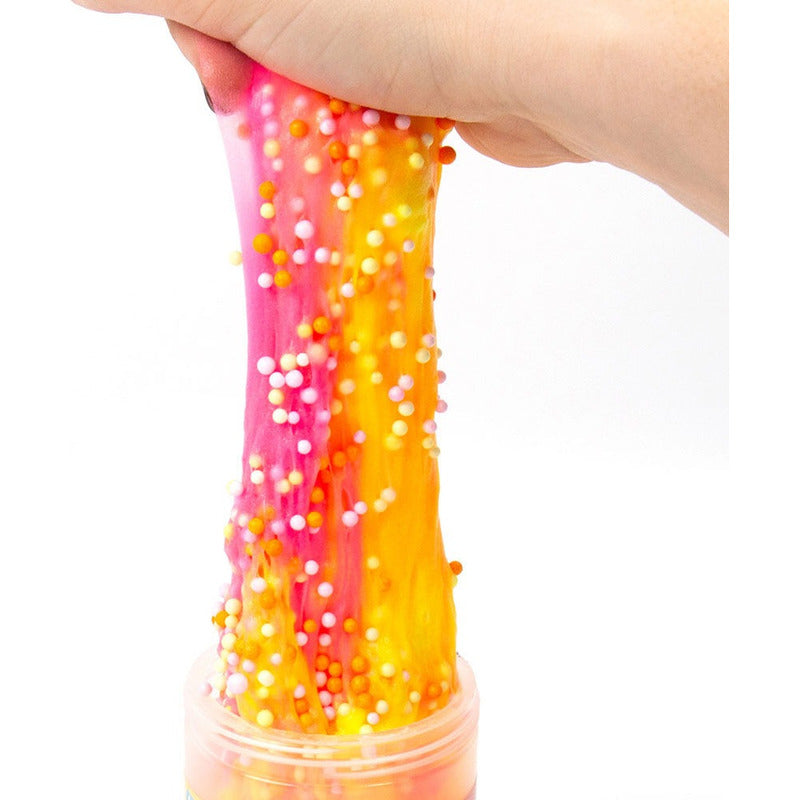 Este frasco de 170 g contiene un vibrante remolino de slime amarillo y rosa con un aroma a limonada agridulce.