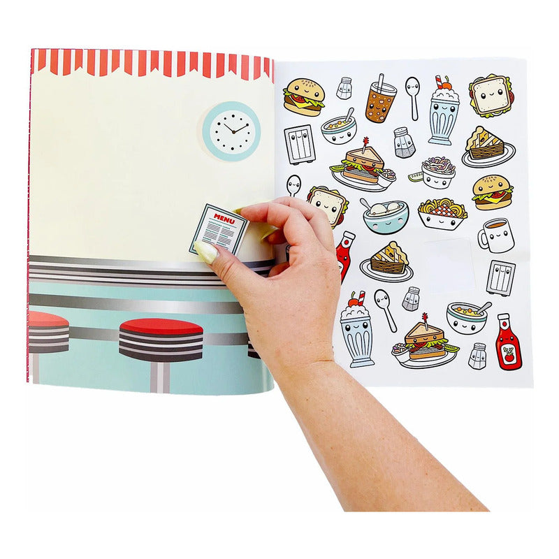 Este adorable y colorido libro de calcomanías lo tiene todo. ¡Cosas para colorear! ¡Cosas para dibujar! ¡Cosas para pegar! Con más de 375 calcomanías kawaii MÁS LINDAS, encontrarás un montón de diseños con temática gastronómica. Desde sushi y perritos calientes hasta tacos y donas, ¡prepárate para dar rienda suelta a tu imaginación!
