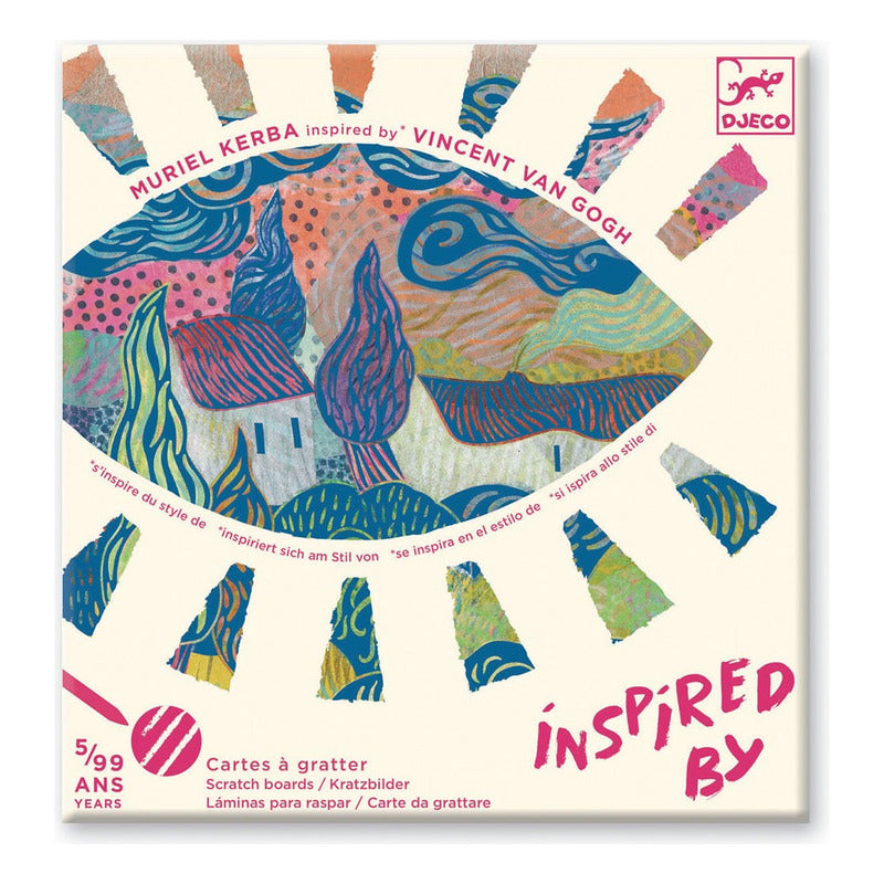 Este set, diseñado por Muriel Kerba, es un paquete de tarjetas rasca y gana que invita a los niños a descubrir el estilo de Vincent Van Gogh, el gran maestro del prefauvismo.