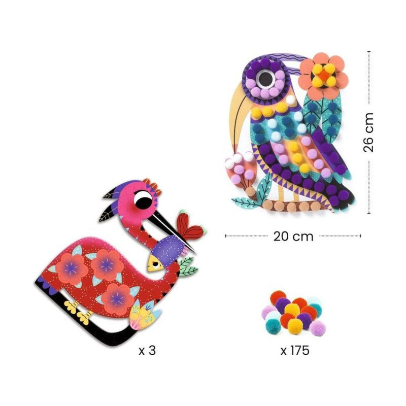 DJECO. Kit Manualidades Mosaico Pájaros Con Pompones