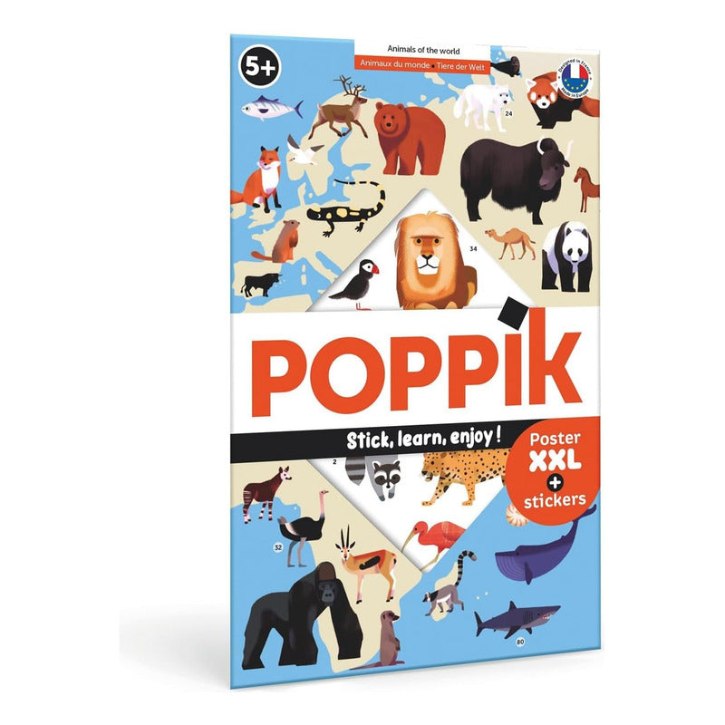 Poppik - Póster Educativo para Decorar: Animales Del Mundo (Póster + 67 Calcomanías)