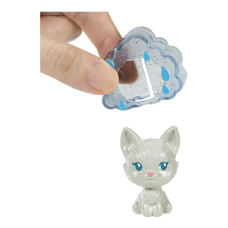 Una diadema en forma de sol y zapatos translúcidos completan su dulce look, y un gatito amigo con un disfraz a juego se suma a la diversión
