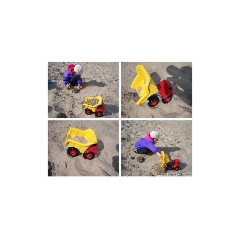 El Green Toys Dump Truck está hecho en los Estados Unidos a partir de envases de leche de plástico 100% reciclados.