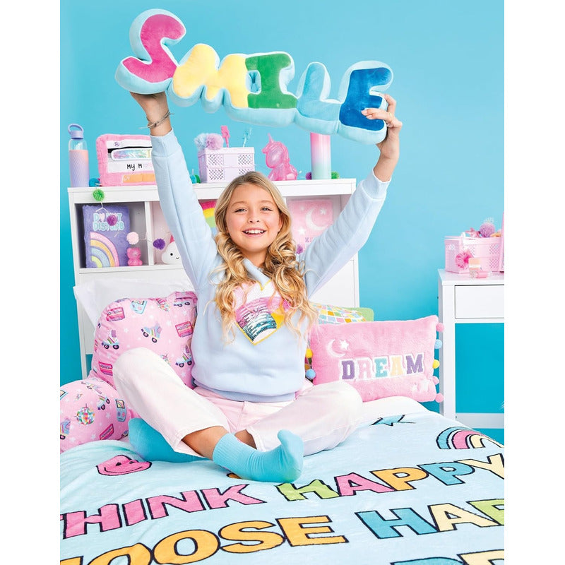Siempre hay espacio para un cojín decorativo divertido, brillante, cómodo y original, ¡sobre todo si es tan divertido como este cojín con forma de letra SMILE! Este cojín de fleece suave y colorido alegrará cualquier espacio con su vibrante arcoíris de colores y su mensaje de alegría. Y no solo es bonito, sino que está relleno de fibra 100 % poliéster, ¡así que nunca se abulta ni se deforma!
