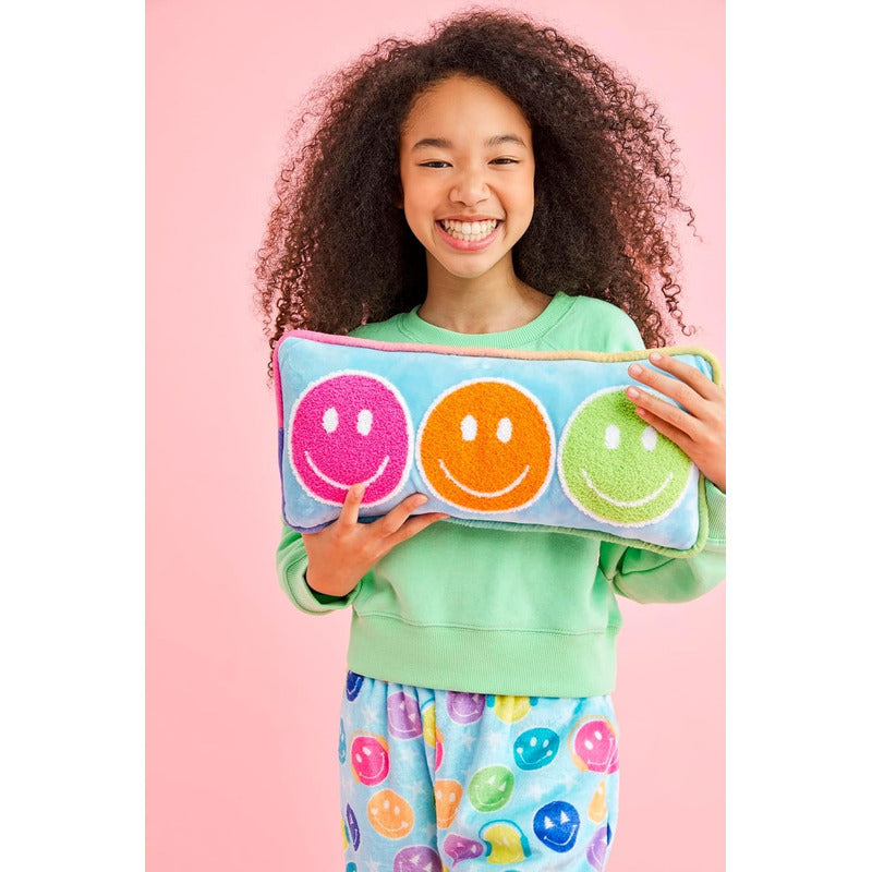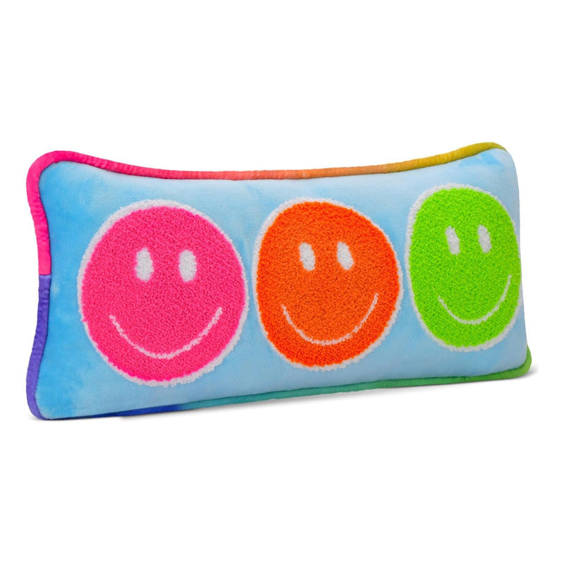 Este cojín de chenilla y fleece presenta tres caritas alegres, brillantes y coloridas, listas para alegrar cualquier espacio. Y no solo es bonito a la vista, sino que está relleno de fibra 100 % poliéster, ¡así que nunca se abulta ni se deforma! Este cojín mide 40,65 cm de ancho x 15,25 cm de alto. La combinación perfecta de colorido y diversión, un diseño espectacular, calidad excepcional y una comodidad acogedora: ¡justo lo que esperas de iscream!