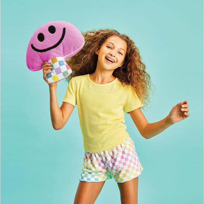 Siempre hay espacio para un cojín más, bonito, brillante, moderno y cómodo, ¡sobre todo si es tan divertido como este llamativo y brillante cojín! Este cojín de chenilla súper suave presenta a un amigo sonriente, brillante y colorido, listo para alegrar cualquier espacio. Y no solo es bonito a la vista, sino que está relleno de fibra 100 % poliéster, ¡así que nunca se abulta ni se deforma!