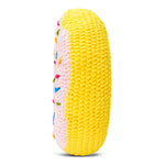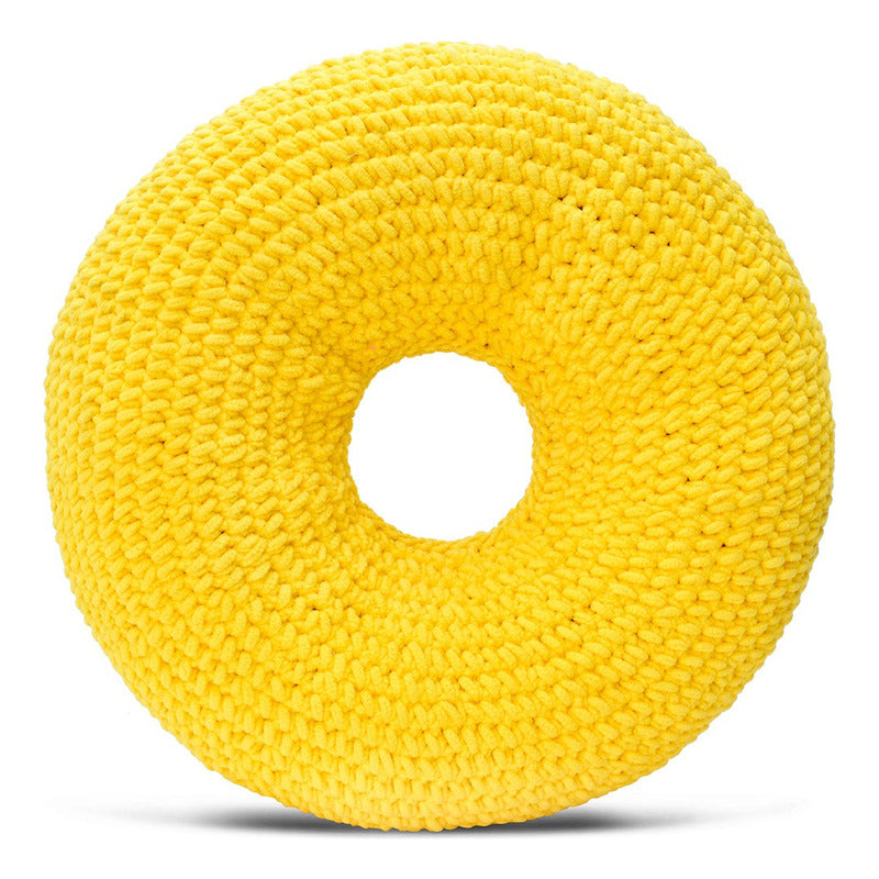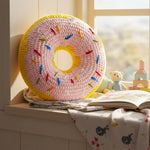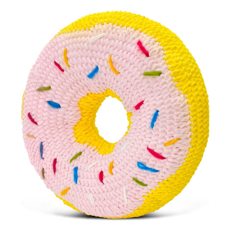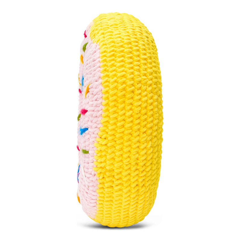 Siempre hay espacio para un cojín más, bonito, brillante, moderno y cómodo, ¡sobre todo si es tan divertido como este llamativo y brillante cojín! Este cojín de crochet presenta una dona con chispitas, colorida y alegre, lista para alegrar cualquier espacio. Y no solo es bonito a la vista, sino que está relleno de fibra 100 % poliéster, ¡así que nunca se abulta ni se deforma!