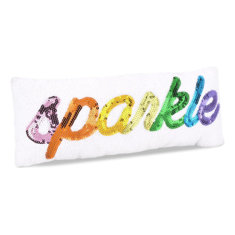 Siempre hay espacio para un cojín decorativo divertido, brillante, moderno y cómodo, ¡sobre todo si es tan divertido como este alegre cojín con apliques de lentejuelas! Este cojín de fleece super suave presenta un arcoíris que te recuerda la felicidad y está listo para alegrar cualquier espacio. Y no solo es bonito, sino que está relleno de fibra 100% poliéster, ¡así que nunca se abulta ni se deforma!