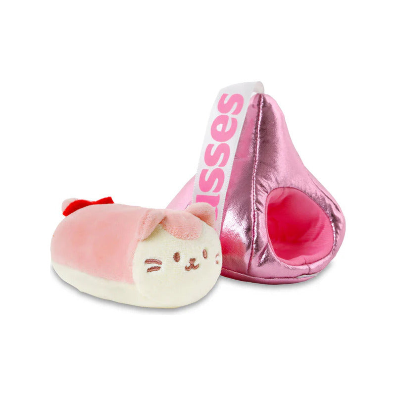Peluche de gatito kawaii con besos de chocolate rosa