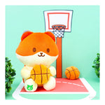 Zorro kawaii sosteniendo un juguete de peluche de baloncesto