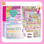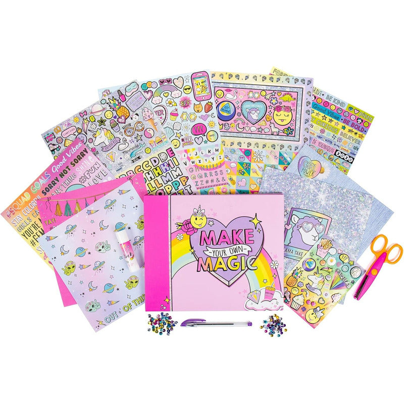 MÁS DE 800 ACCESORIOS PARA SCRAPBOOKING: Incluye pegatinas vibrantes y brillantes de unicornios, corazones, flores, hashtags, frases y mucho más. Usa las pegatinas con las letras del alfabeto para escribir tus frases favoritas o escribir quién sale en las imágenes. Luego, diviértete coloreando diseños adorables y frases de moda en cada página.