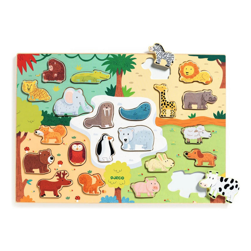 Djeco - Rompecabezas Madera: Animales Del Mundo (22 Pzas)