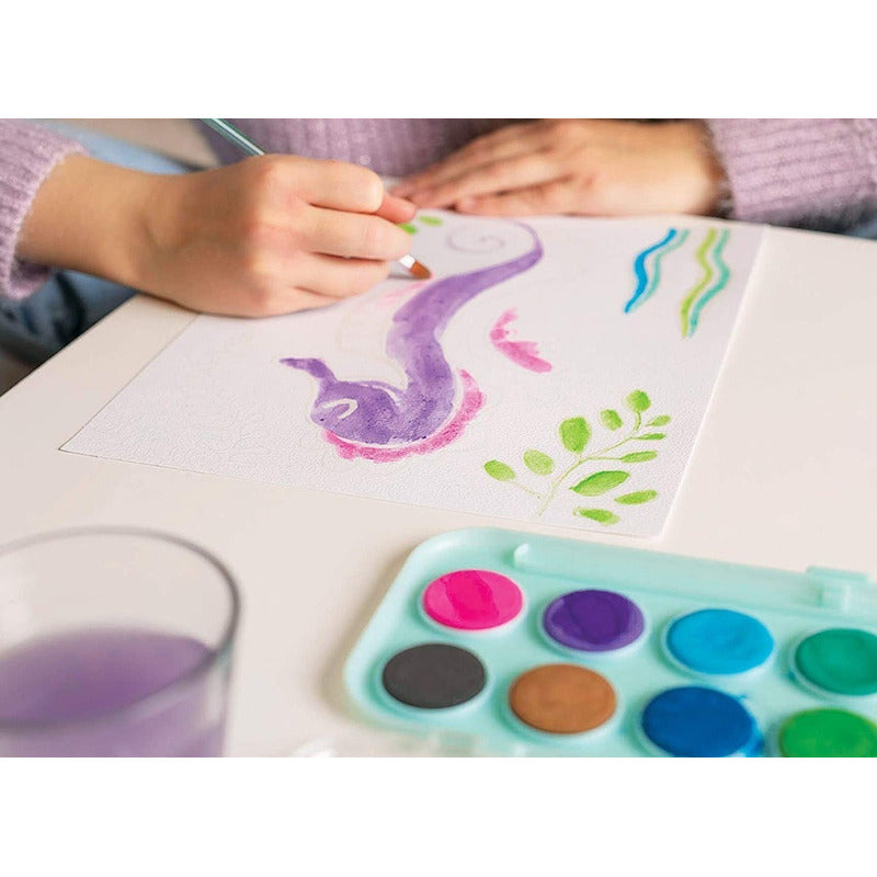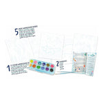 INCLUYE: 5 pinturas para colorear, 12 acuarelas y 2 pinceles