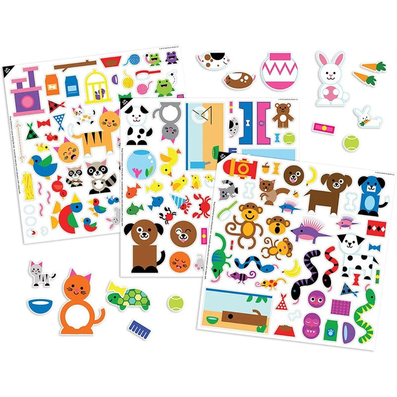 Mezcla y combina las adorables piezas para cuidar, vestirse y jugar con tus propias mascotas Colorforms Vuelve a pegar las piezas en cada escena para imaginar tus propias historias divertidas una y otra vez.