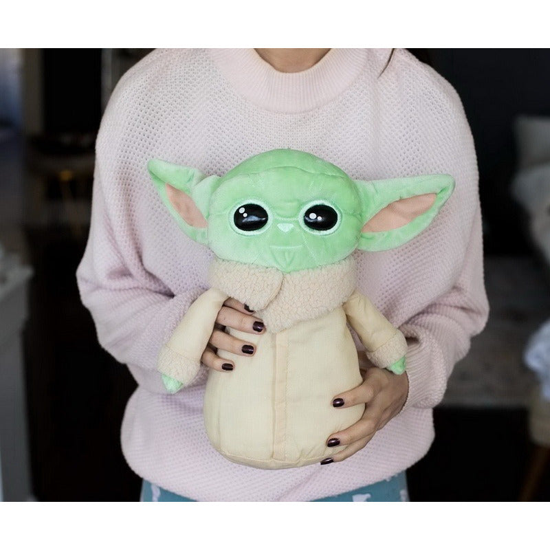 Inspirado en la serie Disney+, The Mandalorian, la adorable figura con piel verde, orejas grandes y ojos grandes parece un bebé Yoda, pero se llama "El niño"