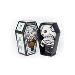 El peluche viene en un escalofriante ataúd, pero ten por seguro que es tan inofensivo y adorable como cautivador.