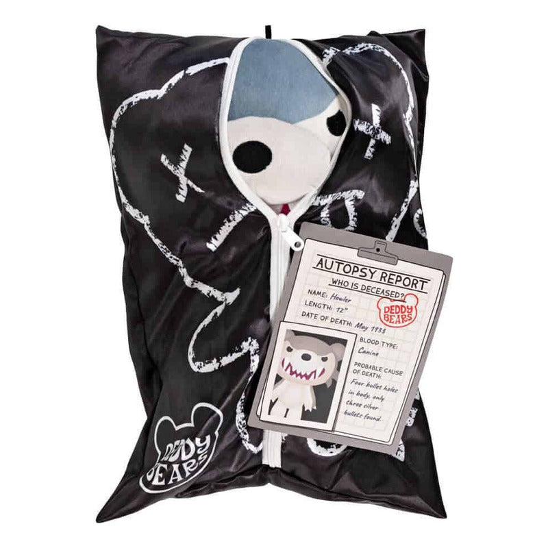 ¡Colecciónalos todos! El gran peluche de 30 cm de Deddy Bears Aullador viene con una bolsa y un informe de autopsia.