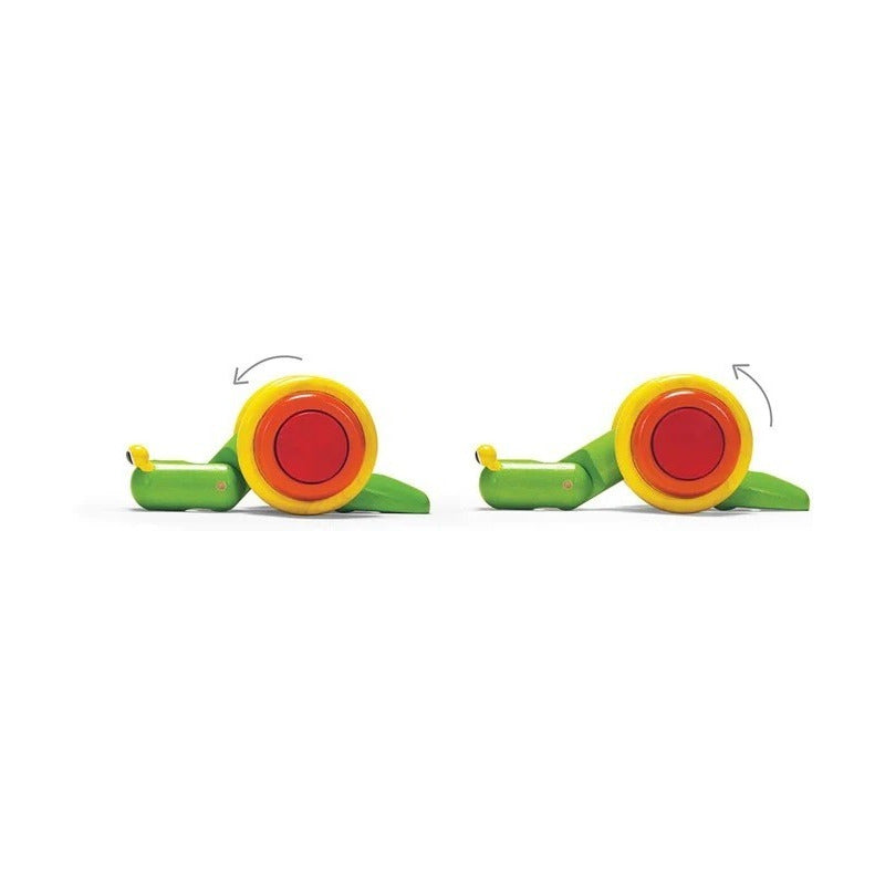 Tanto el equilibrio como la coordinación se desarrollan a medida que los niños practican caminar y aventurarse solos mientras tiran del caracol. A medida que se tira del caracol, el cuerpo avanza con una acción de rastreo mientras rueda por los bordes de la concha.