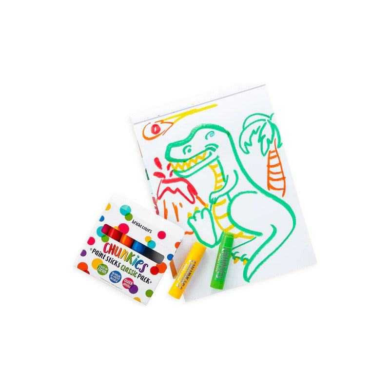 ¡Un set de inicio de barras de pintura Chunkies en un paquete de 6 apto para viajes! Estas barras de pintura son fáciles de sostener y vienen en 6 colores clásicos y de secado rápido. Puede girar barriles para una diversión duradera y sin ensuciar que encantará tanto a niños como a adultos.