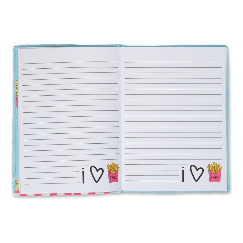 ¡A las niñas les encanta tener un diario especial donde escribir pensamientos, garabatos, secretos y deseos! Este divertido diario es perfecto para inspirar ideas divertidas y alegres, porque ¿qué mejor que un diario aterciopelado con cuatro mini papas fritas de peluche? Consigue autógrafos de tus amigas del campamento de verano, pega fotos y recortes: ¡las opciones son infinitas!