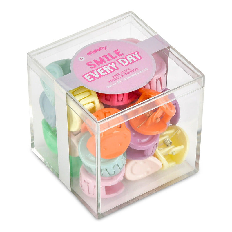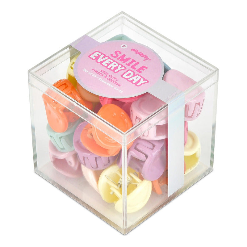 ¿Hay algo más sencillo y útil que una pinza para el pelo? ¡Este accesorio clásico es imprescindible para cualquier chica! Y no son las típicas pinzas lisas: tienen una dulce carita sonriente y colores contemporáneos para alegrar el día a día. Ya sea para recoger su precioso cabello o como toque final para un peinado encantador, estas pinzas serán un accesorio indispensable una y otra vez. ¡Asegúrate de tener algunas extra para su mochila o bolso para que las lleve siempre contigo!