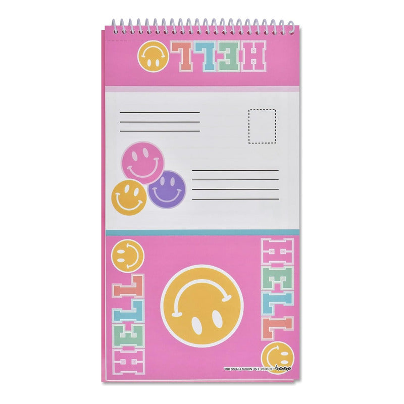 Haz que sea fácil y divertido para tu hijo mantenerse en contacto con sus amigos y familiares con este paquete de papelería "Sellar y Enviar". Este libro de espiral mide 26,7 cm X 19,7 cm e incluye 40 hojas a todo color, rayadas por una cara, listas para escribir. Después de escribir una nota, dóblala y ciérrala con una de las pegatinas incluidas. ¡Listo para enviar! ¡Es la manera perfecta de escribir una nota de agradecimiento a una amiga o contarle a la abuela sobre el campamento de verano!