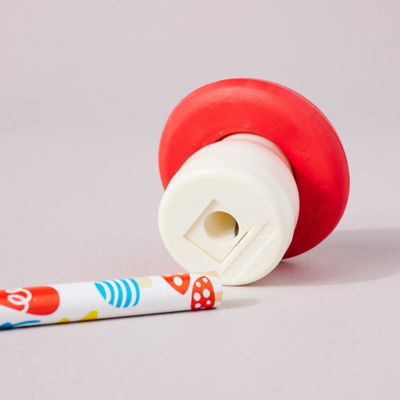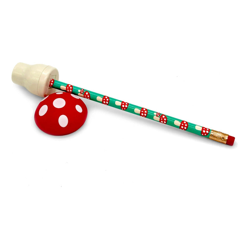 Incluye: 15 lápices, sacapuntas en forma de hongo con tapa de borrador.