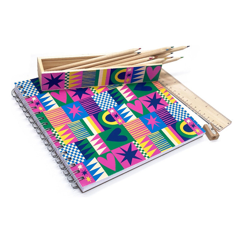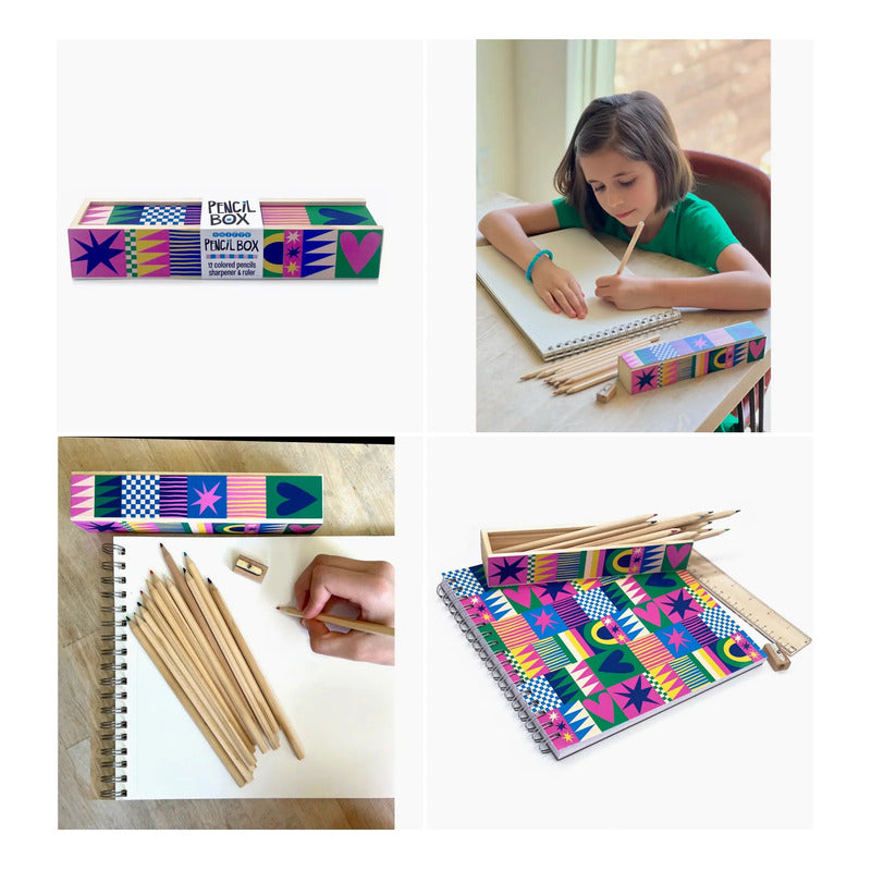 Snifty - Caja Geo Love: Lápices de Colores (12pk) + Sacapuntas + Regla