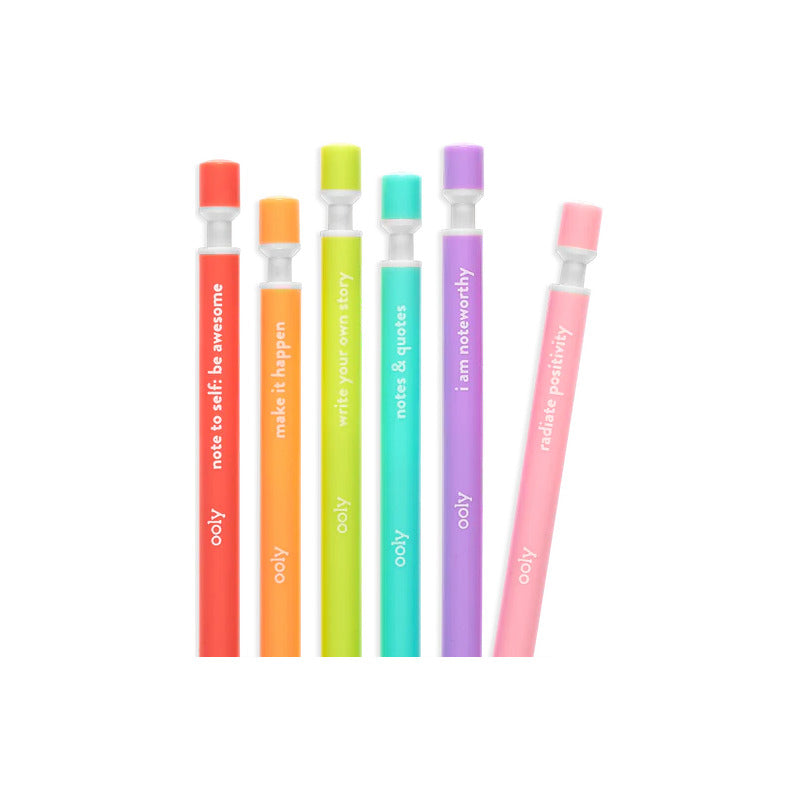 Cada uno de estos 6 portaminas tiene su propio mensaje inspirador. ¡Los portaminas mecánicas de grafito Noted! están listos para usar o divertirse!
